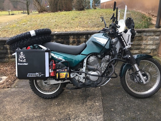Voll beladen bin ich dann in Frankfurt angekommen. 100 war keine Reisegeschwindigkeit, das war pure Raserei. Das Fahrwerk komplett überladen, jedoch für die Fernreise schon abgestimmt, die Maske hält. Auch starke Windböhen sind super damit zu fahren, sodass es zu keine Problemen gekommen ist. Gewichtsverteilung muss ich noch angehen. Weiterhin steht der Scottoiler aus, welchen ich von der CBR 1100 XX auf der TA haben möchte. Und elektronische Feinheiten 😉 die müssen noch verfeinert werden.
