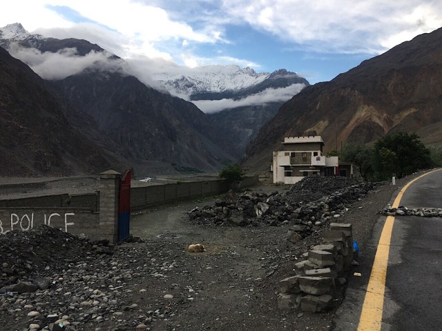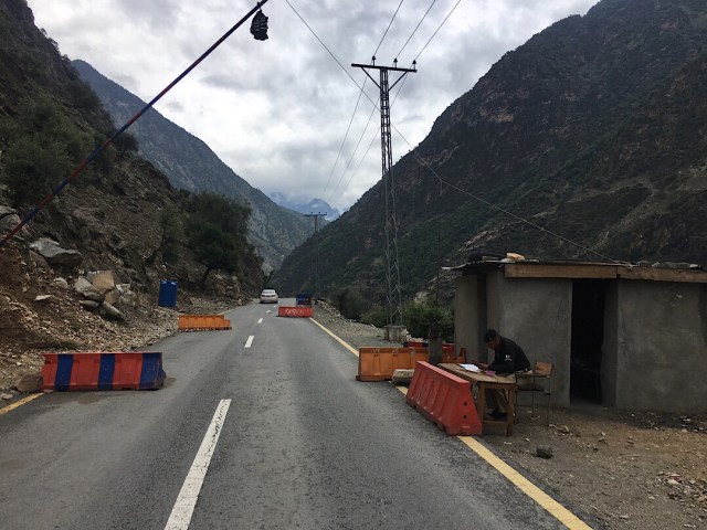 In einer Ortschaft angehalten und dort lokales Essen bestellt. Ein wenig Brot, ein wenig Ei, einen Chai und weiter. Das ging alles soweit gut, bis auch die Polizei wieder wach wurde. Kontrolle vor einer Brücke. Ok, Passport. Vehicle document, name, fathers name, plate number, destination. Und wer hätte das gedacht, 300 Meter weiter, nach der SCHEISS BRÜCKE, DAS GLEICHE SPIEL. Da wird man doch Irre im Kopf. Als ob ich in der Zwischenzeit 5 KG Hasch, 10 AK 47, und einen LKW fahren würde. Wie unorganisiert und einfach wahllos, sinnlos diese Kontrollen waren. Es gab ja nur eine Straße, aber einfach Realität. Ging nicht anders. Also Daten her. Es ging weiter. Wer hätte das gedacht. Himalaya erreicht. Wir haben schlicht weg endlich den Himalaya erreicht. Ich konnte es nicht glauben. Wir fuhren auf dem Karakorum Highway in Richtung China. An der Ausfahrt zum K2 vorbei. Ein von zwei Domizilen erreicht. Wir sahen Adler, Steinböcke, Wildhunde, Berge, frische Luft, noch mehr Berge. Also ich rede von Bergen, nicht mal so Pimmelfuzzies von drei- oder viertausend Metern. Ich rede von XXXXXX Meter hohen Bergen. Wir fuhren und fuhren in Gedanken – Eine Eskorte muss noch kommen. Sie musste auch noch kommen. Aber wann?