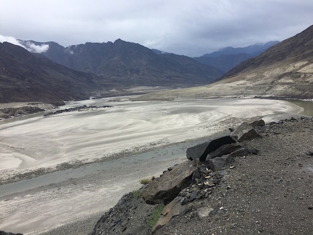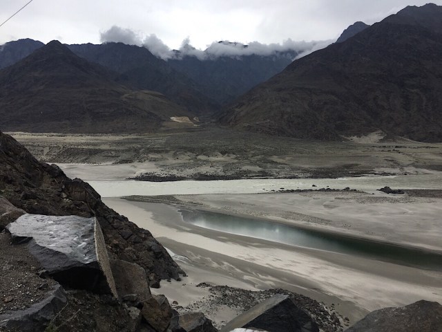 Die Straße zwischen Abbodabat und Karimabad besteht aus Baustellen, alle in chinesischer Hand. Karakroum Highway mit der Betonung auf Highway. Die Chinesen versuchen mit aller Gewalt eine zwei, drei oder vierspurige Bahn zum Meer zu bauen. Koste es, was es wolle. Also mussten wir an einer Baustelle auf die Sprengung warten. Kleine aufmerksame Kids mit sehr sehr gutem Englisch kamen angerannt. Fragten uns neugierig wo wir her kommen, wo wir hin wollen. Warum wir das machen: „Just for fun? – Yes, just for fun“ Zack, ein Signal ertönte, Kinder rannten weg und schon kamen zwei, drei Jeaps angerast, durch den Schlamm, sodass wir uns nur noch vom Schlammspritz wegdrehen konnten. Die Schweine haben uns eingesaut mit Schlamm, als hätten wir uns gesuhlt. Also, es ging auch weiter für uns. Ab in Richtung Karimabad, Abbodabad Lake.