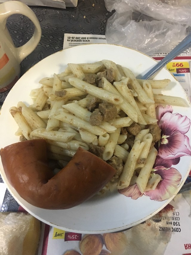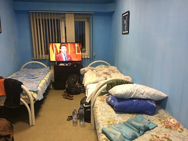Am späten Abend kam mein Zimmergenosse nach Hause. Er war ein sehr großer stattlicher Mann. Wir würden sagen, 2 Meter Peter oder Schrank! Fragte nach seinem Messer und deutete auf mich, ich gab ihm im schlechten russisch verständlich zu machen, dass ich nicht sein Messer habe sondern der Koch, welcher den Teller brachte. Keine Sekunde gewartet, ging er ins Zimmer nebenan und diskutierte mit seinen Landsleuten, wo/wer sein Messer ist/hat. Kam glücklich zurück und umarmte mich. Ich fragte mich nur, was hier los ist und in welches Kino ich gelandet bin. Er meinte immer wieder über google.translate – guter Mann, guter Mann. Ich wollte nur noch schlafen, was ich dann auch kurz danach tat, um am nächsten Morgen um 5 Uhr erneut mich auf die Weiterreise zu begeben.