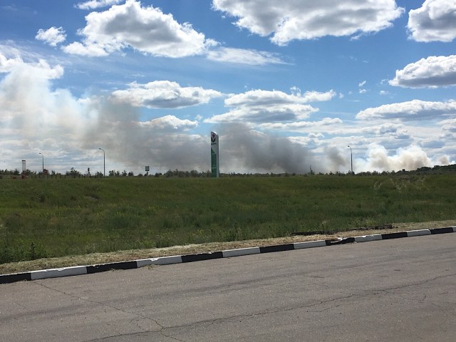 Steppenbrand irgendwo zwischen Ufa und Samara, welcher dann nach einer Weile mit Helikoptern bekämpft wurde.