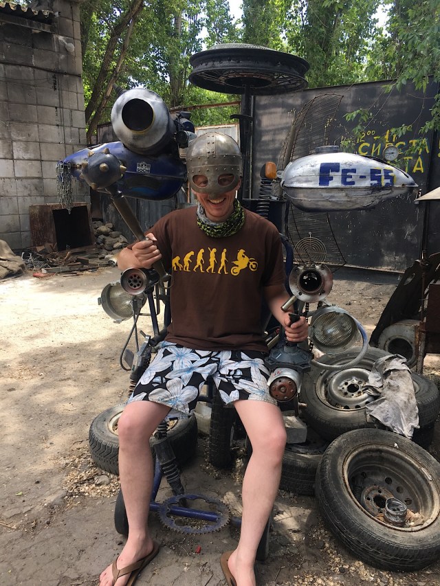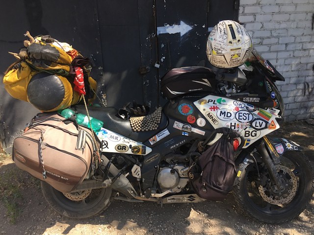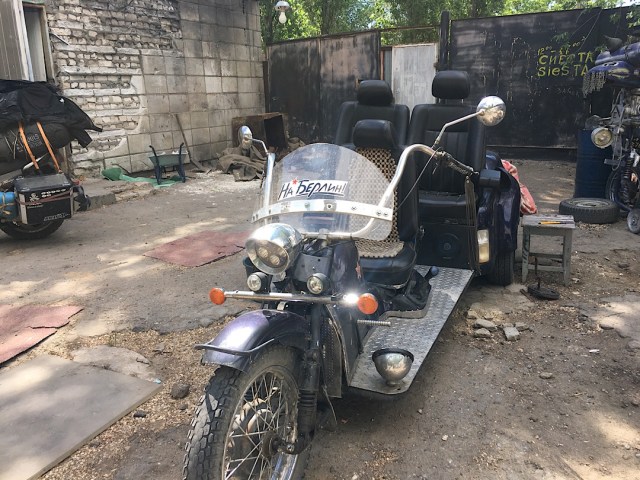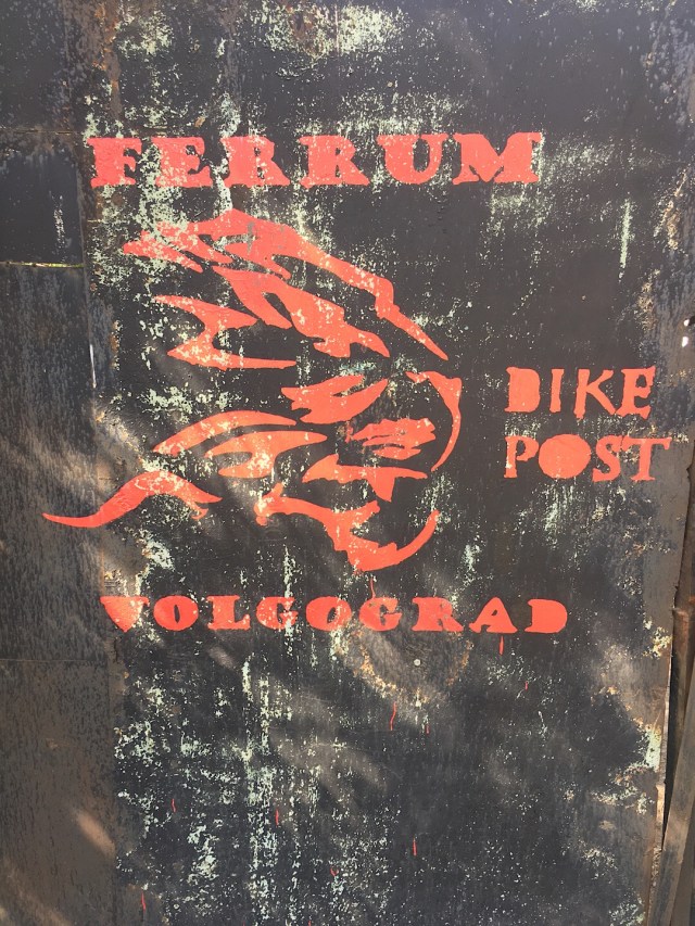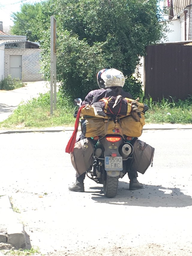 In Wolgograd völlig gerädert angekommen nach der Reise, wurde ich bereits eingeladen von Juritsch. Zum Biker Ferrum Bikepost sollte ich direkt fahren, jedoch wollte ich nach so einem Ritt erst einmal eine Verschnaufpause. Somit habe ich separat in einer Unterkunft eingebucht, tja, von wegen Verschnaufpause. Motorrad konnte ich sicher geparkt unterstellen, direkt vor dem Eingang und hinter ein schweres Metall Gatter. Jedoch durfte ich mein Zimmer ohne WLAN mit einem Aserbaidschaner teilen, welcher im betrunkenen Zustand zum wichtigsten Geschäftsmann der ehemaligen Sowjetunion wurde. Er telefonierte und trank abwechselnd und man konnte beobachten, wie der Kollege von Glas zu Glas wichtiger und emotionaler am Telefon wurde. Hammer Geschäfte müssen das gewesen sein. Er stolzierte in seinem alten „UDSSR“ Anzug auf und ab im 2 Meter langen Zimmer. Ich wurde verrückt in diesem Zimmer, also zog ich mich wieder an und verduftete mich in die Lobby der Unterkunft, wo es WLAN Empfang gab. Dort etwas gechattet und Kontakt mit der Heimat aufgenommen. Begutachtete das Moped peu a peu auf Fehler, Probleme und alles mögliche was mir während der Fahrt beim Fahren aufgefallen ist. Am nächsten Morgen wollte ich meinen Kontakt Juritsch besuchen gehen, welcher mich seit Kasachstan begleitete. Er gab mir mit den Fahrwerksproblemen unterwegs immer wieder Mut und Kraft nach Wolgograd zu kommen. Die Stadt sei eine internationale Stadt und es gibt dort nichts, was man nicht reparieren kann. An eine etwas abgelegene Stelle fand ich ihn dann: