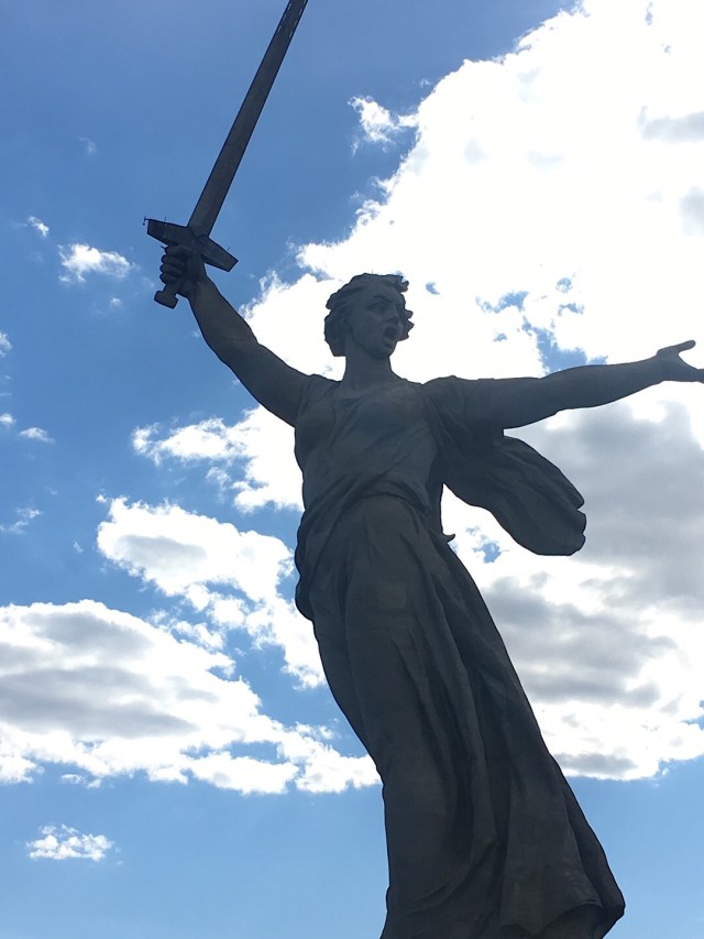Gerade hat mich mein Freund aus dem Kaukassus daraufhingewießen, dass die Statue „Mutter-Heimat Statue“ heißt und nicht mit dem Fundament verbunden ist. Somit könnte man sie theoretisch umschuppsen mit ein wenig Kraft 🙂