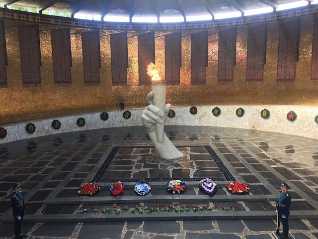 Es war sehr ehrfürchtig zu sehen welche historische Ereignisse sich dort abgespielt haben. Wir liefen über das Areal und schauten uns Mütterchen Russland an, welche allgegenwärtig war. Als wir dort hin gelaufen sind, hörte ich deutsche Stimmen und bin uncharmant einfach auf die 3 Herren zugelaufen. Im akzentfreien fränkisch habe ich nun die Lands Männer aus Würzburg getroffen, welche die Chance der FIFA WM nutzen wollten und zugleich sich auch für das Memorial interessierten.