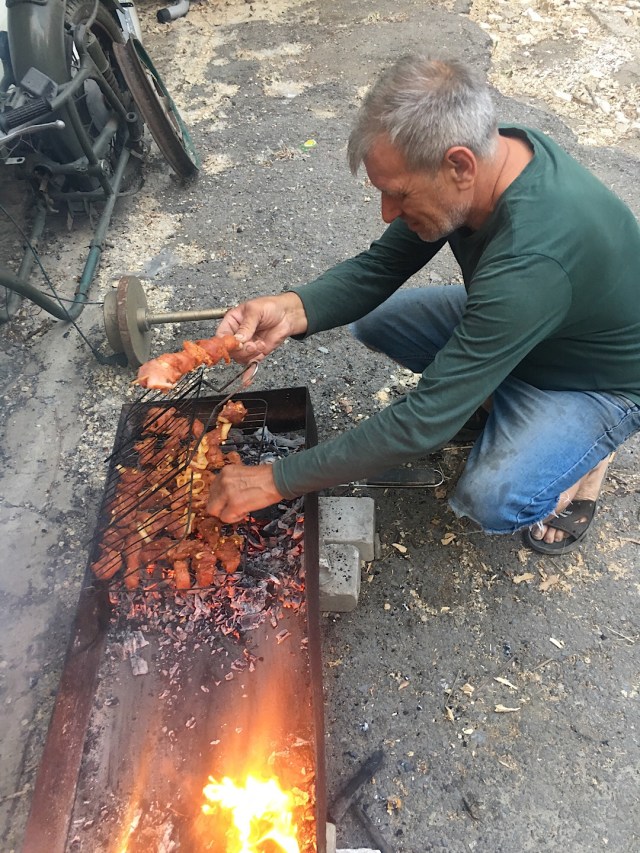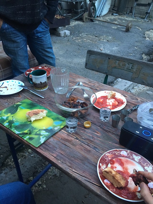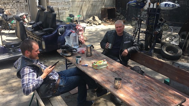 Mitgebrachte Gewürze von zu Hause und aus dem Iran brachte ich und wir würzten Fleisch, Salat und Brot. Wir aßen und tranken 3 Tage lang wie im Märchen 😀 Da Juritsch so ein hohen Bekanntheitsgrad hat, kamen auch Biker einfach mal so 1200 KM einfach angefahren über das WE und begrüßten ihn mit Souvenirs von der Herkunftsregion. Natürlich war dies ein weiterer Anlass zur Freude und somit musste erneut Lebensmittel und Getränke besorgt werden, sodass die Mannschaft dann von 5 – 8 Mann durchschnittlich versorgt bleibt. Juritsch selbst hat 2 Familien. Seine Frau mit Kinder und sein Bikerclub. Für deutsche Verhältnisse schwer zu verstehen, wie ein Herz und Seele für beides so hoch schlagen kann.